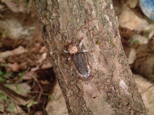 産卵中のクビシロカミキリと産卵マーク 2003.6.21 岡山県和気郡
